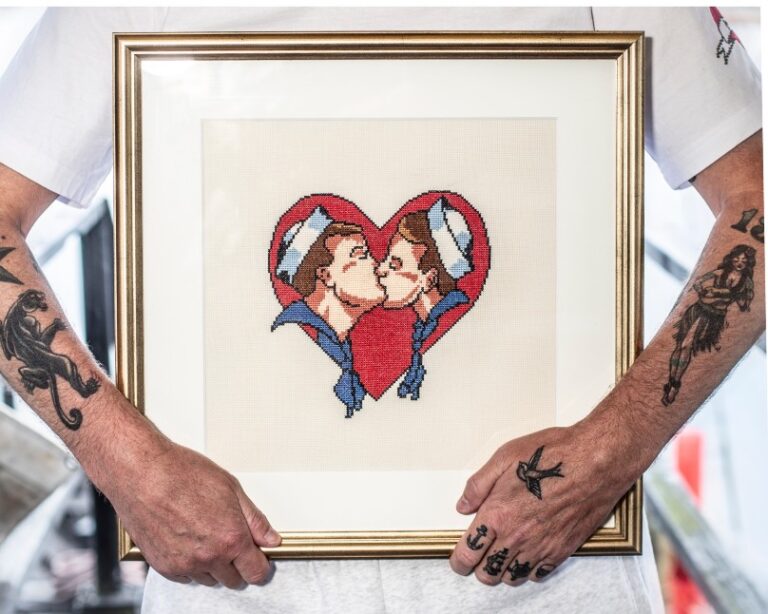 De 6.910 korssting kan med fordel indrammes og hænges op i entréen, så alle, der kommer ind i dit hjem, kan se at her er der plads til al slags kærlighed. Du kan naturligvis også lave et patch, som kan ryge på alt fra cowboyjakken til muleposen.